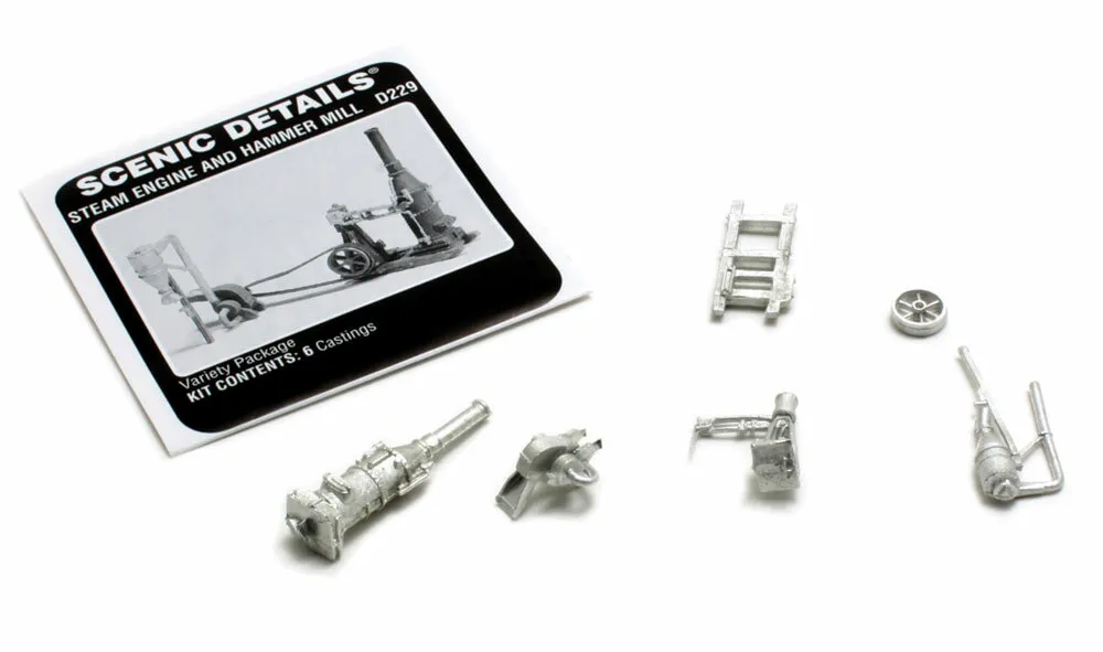 Steam Engine and Hammer Mill HO Scale Kit They fed the steam engine with coal to operate the hammer mill. The mill chops or grinds materials. This is great for lumberyard scenes, where the byproducts are milled. INCLUDES 6 Metal Castings Instructions