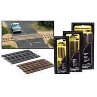 The ready-to-place, injection molded styrene Steel Plates are notched to fit over rail spikes. Includes styrene shims to correspond to proper code. Cut as needed. Works for 2 and 3-rail. Two crossings per package. Model scenery from Woodland Scenics.