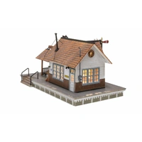 The Depot is a classic whistle stop depot suitable for any layout. It features clapboard siding, a weathered cedar shake roof, covered passenger waiting area and a modeled interior that includes a ticket clerk figure standing before an open ticket window. Scene-setting details include a lamppost, posted train schedule, luggage carts, benches, semaphore, pigeons sitting on the roof, signage, decals and more! The Depot also includes one interior LED light. See photos for footprint.