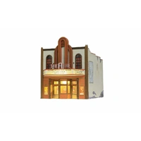 The Theater offers classic vintage architecture, an expertly weathered stucco-over-brick exterior, tall arched windows, gilded kick plates on front doors, a decorative tile facade and carved wood trim. Window treatments and decals are included. This building features a first-floor printed interior, a lighted marquee and one interior light. See photos for footprint.