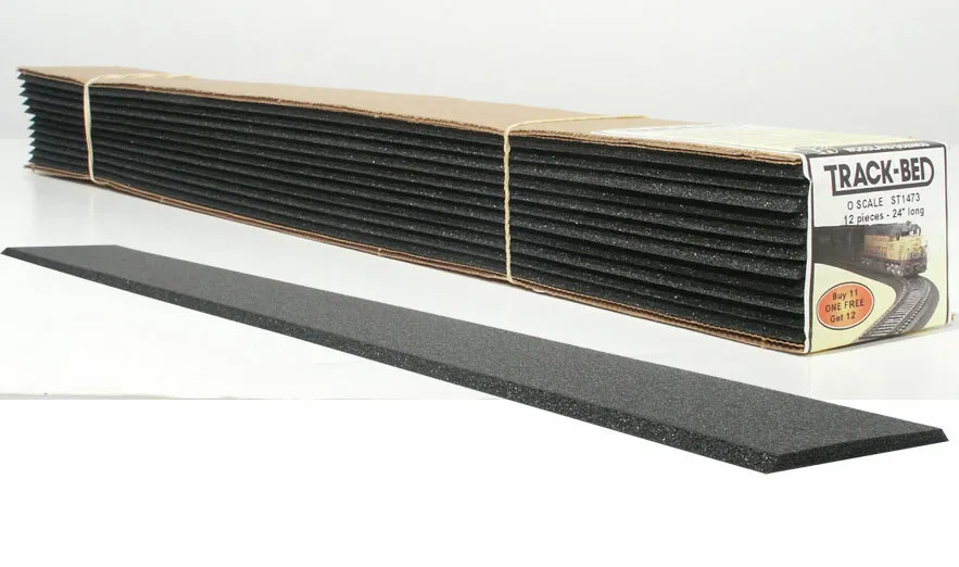 Strips are the perfect roadbed for tight track applications. They align well with cork or Homasote®*. Track-Bed deadens sound, requires no pre-soaking like cork, remains flexible and will not dry out or become brittle. Also compatible for HOn3 and HOn30 gauges.