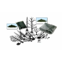 Trees Learning Kit Modelers learn the ease of adding trees to any layout. The kit contains illustrated instructions and enough of the following products to make 18 trees ranging in height from 3/4" to 8" (1.91 cm to 20.3 cm) : Tree Armatures, Hob-e-Tac® Adhesive and Clump-Foliage™. INCLUDES 18 Tree armatures 1 fl oz (29.5 mL) Hob-e-Tac 50.5 in 3 (827 cm 3 ) Medium Green Clump Foliage 16.2 in 3 (265 cm 3 ) Conifer Clump Foliage