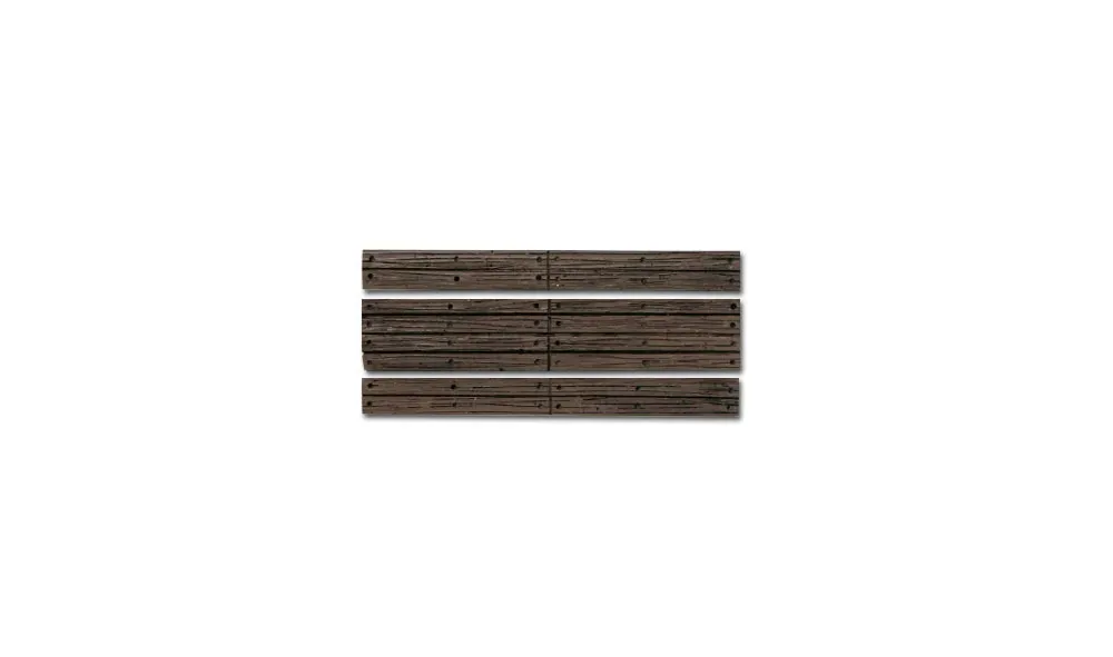 The ready-to-place, injection molded styrene Wood Planks are notched to fit over rail spikes. Includes styrene shims to correspond to proper code. Cut as needed. Works for 2 and 3-rail. Two crossings per package. Model scenery from Woodland Scenics.