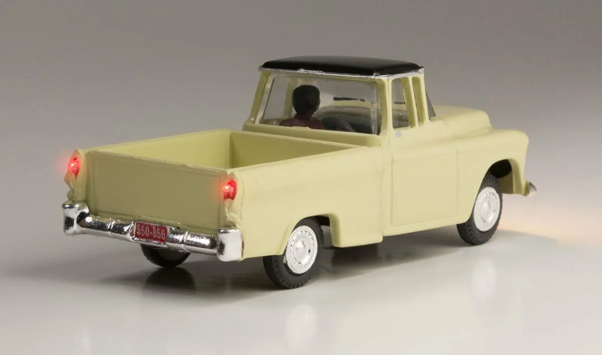 Work is play to this truck. From sun-up to sun-down this good ol' boy is always on the move. Just Plug® Vehicles make it easy to model backcountry roads or busy city scenes. With a driver and a set of headlights and taillights, your layout's traffic has never looked so realistic. Add a Vehicle to a Just Plug Light Hub for easy installation. Just Plug and you're done! 20mA per Vehicle. Model scenery from Woodland Scenics.