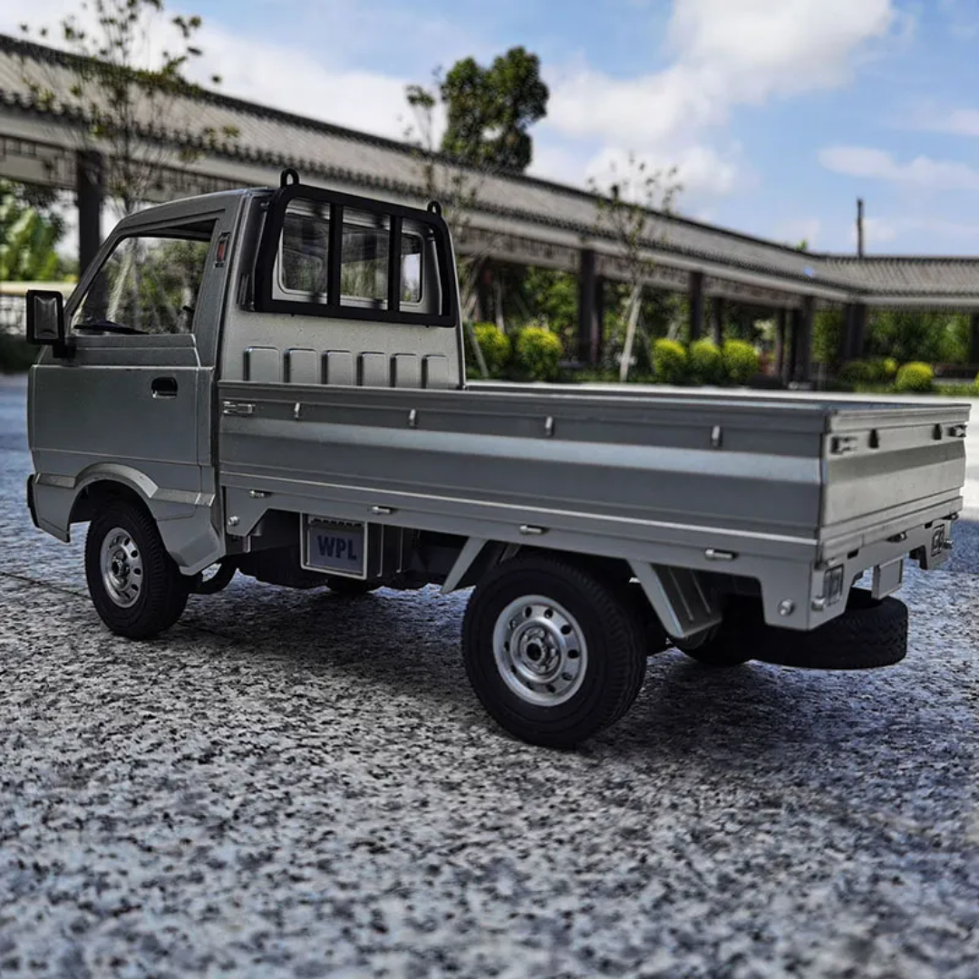 The WPL D12 RC Kei drift truck is made from high-quality material and features a body reminiscent of the Suzuki Carry truck. This 1/10 scale RC truck has a number of scale details including a full interior, clear windows, headlights and more.