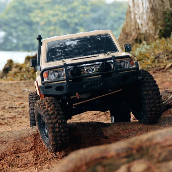 The Yikong Hobby 1/10 RC Crawler is an off road vehicle designed for both beginners and professionals, featuring a detailed tribute to the iconic LC79. This 1/10 scale crawler offers impressive performance with its low centre of gravity chassis, 2 speed transmission, and independent F\&R locking differentials. Equipped with powerful electronics like a 550 brushed motor and a HobbyWing 60A ESC, it’s perfect for rock crawling and all terrain driving. The crawler also boasts F\&R portal axles for enhanced ground clearance and traction, making it a great option for anyone looking for a versatile, high performance off road RC car.