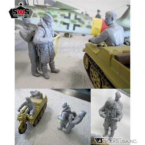 Included Items: 1 driver talking to the pilot, 1 mechanic helping the pilot, and 1 pilot preparing the parachute