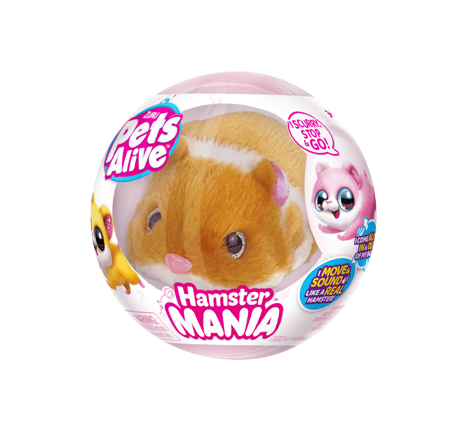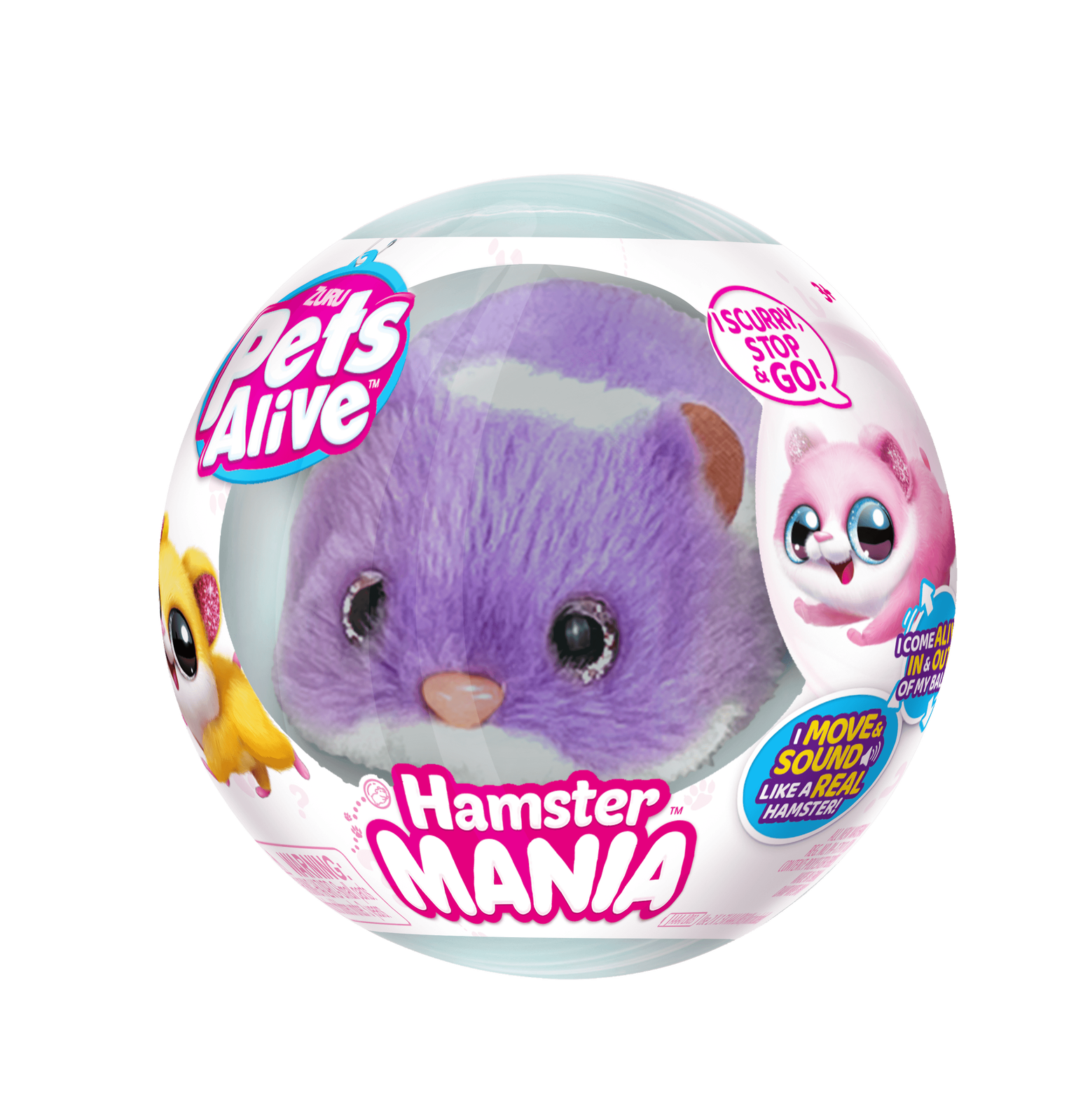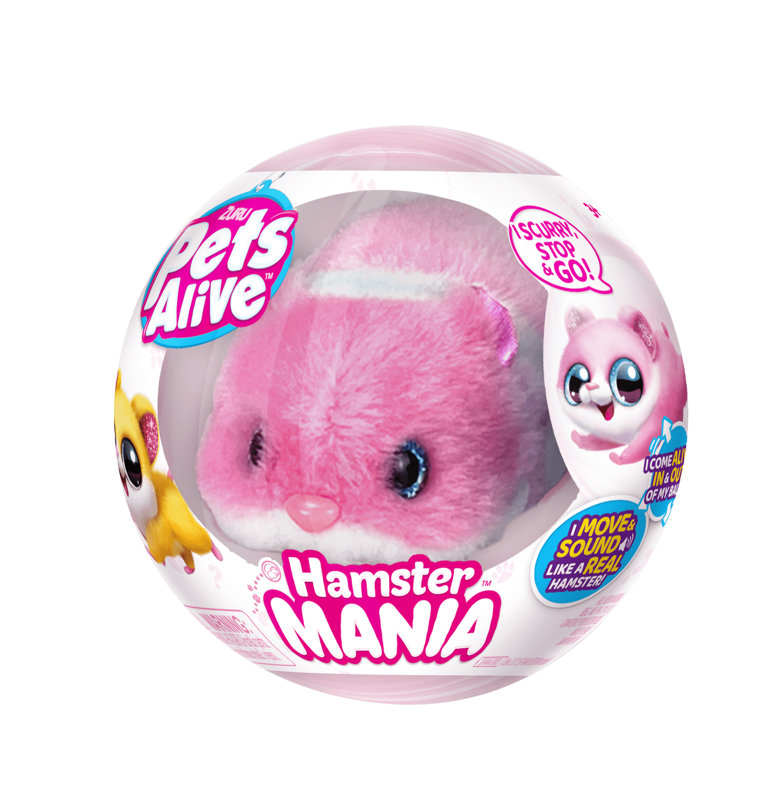 Meet the cutest bundles of fun with Pets Alive Hamster Mania! These furry friends run in and out of their balls and come to life with the sweetest hamster sounds! Hamster Mania are life like hamster pets, they can even sense walls and doors when they're scurrying around! There are 4 adorable Hamsters to adopt and collect for the ultimate Hamster Mania! Requires: 2× AAA batteries Recommended age: 3+ Please note: This item is part of an assortment and multiple styles are pictured.