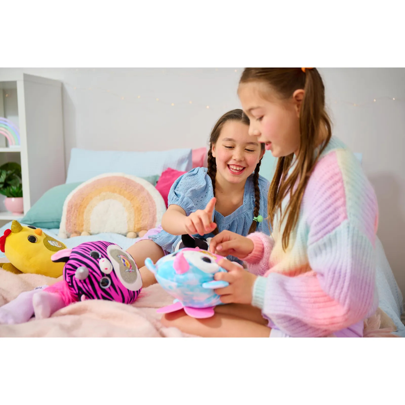 Crack into all-new Eggzania Mini Mania! This egg is oozing with over 10 surprises and brand new Eggzania characters! Remove the egg from the nest to hatch open your super-squishy Eggzania plush! There are 6 Eggzania animals to collect! Please note: This item is part of an assortment and multiple styles are pictured.