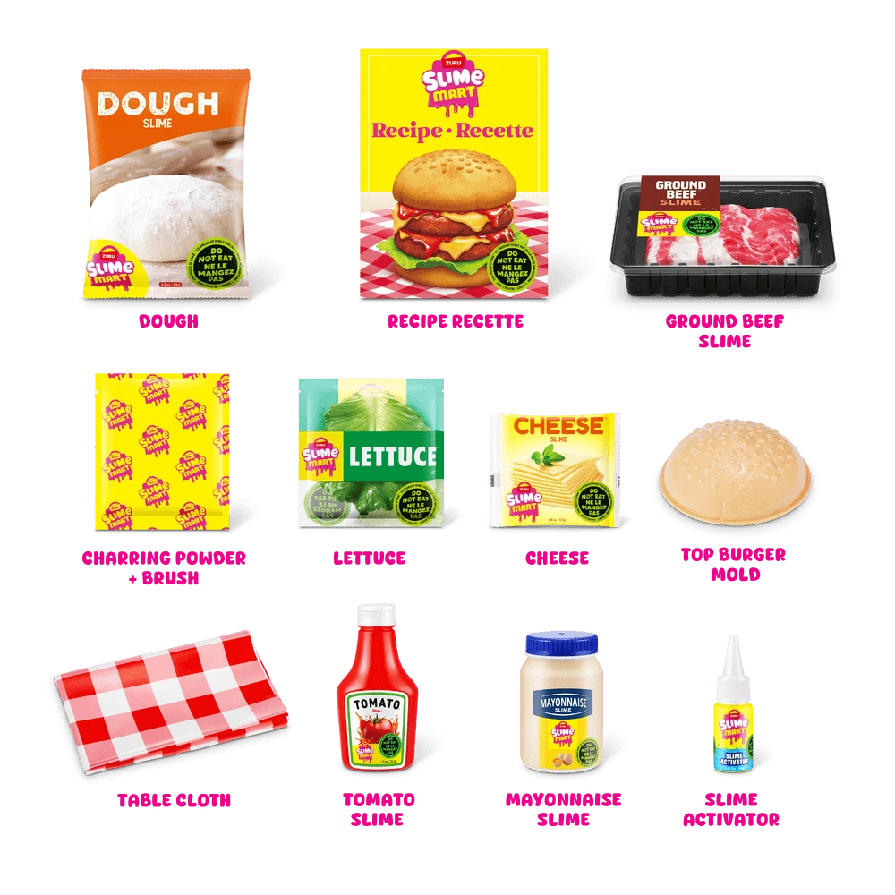 SKU: AZT15905A | Brand: Zuru | Product: Zuru Slime Mart - Shopping Basket Series 1 - Burger The ZURU Slime Mart Burger features moldable slime compound with detailed, lifelike burger design. The pliable texture responds to stretching and squishing motions. Mix, layer, and customize the slime to create unique food-themed creations. Includes all necessary ingredients for immediate play.
