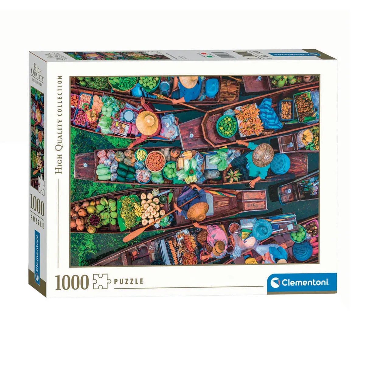 This is the Clementoni Thai Floating Market 1000pc Puzzle 1000 piece adult puzzle Complete puzzle size: 70 x 50 cm The most evocative images, the greatest variety of sizes and the quality signed by Clementoni for a line that is a reference for all puzzle enthusiasts Always sensitive to environmental issues, Clementoni makes extensive use of recycled materials, avoiding polluting components. Made in Italy. Visit the Clementoni support section to take advantage of the "lost parts" service. Conceived, designed and developed in Italy. Target age 18-99 Box dimensions (WxDxH) 37 x 28.1 x 5.5